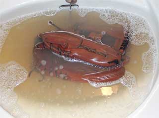 次に、ペシャンコになった型を取るのと、臭いを取るために微温湯に30分ほど漬け置きます。